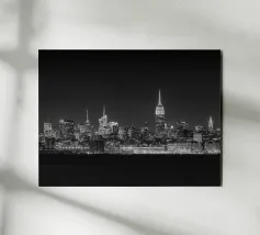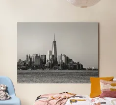 Questa affascinante fotografia in bianco e nero mostra l'iconica Statua della Libertà contro l'imponente skyline di Manhattan, simbolo di libertà e democrazia. Con un design elegante, l'opera d'arte combina l'estetica moderna con la bellezza senza tempo di questo famoso simbolo e aggiunge un tocco di raffinatezza a qualsiasi ambiente.