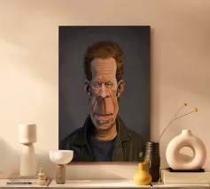 Illustrazione caricaturale umoristica del noto attore americano Steve Buscemi. Una delle caricature realizzate per la serie Celebrity Sunday, in cui un personaggio famoso viene ritratto in un giorno. L'idea è di mostrarli come in una fototessera per avere coerenza.