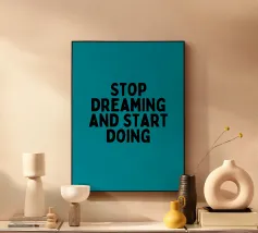 Poche parole e tanta verità! Un disegno che si adatta al motto della vita. SMETTI DI DESIDERARE E INIZIA A FARE. Fallo, non limitarti a sognarlo! Una tipografia minimalista con un tocco di colore colorato addolcisce la vostra giornata.