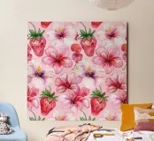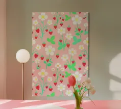 Un delizioso disegno acquerellato che combina succose fragole rosa con morbidi fiori di ibisco rosa su uno sfondo rosa chiaro. Questo dolce disegno tropicale fonde frutta fresca e fiori esotici per un'estetica femminile ed estiva. . Perfetto per gli amanti delle fragole, per gli appassionati di tropici, per i fan dell'estetica rosa e per tutti coloro che amano l'affascinante combinazione di dolci bacche e splendidi fiori tropicali dai toni morbidi e romantici.