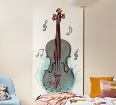 Esplora la bellezza degli strumenti a corda con questa dettagliata tabella didattica che presenta violino, violoncello, viola, chitarra, arpa e ukulele.