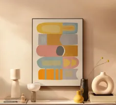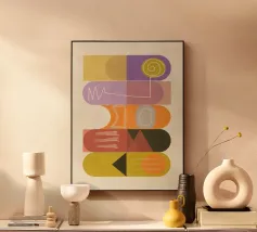 Questo poster moderno combina tre barre colorate verticali con una linea curva che si snoda attraverso l'immagine. La geometria chiara incontra il movimento organico, i colori - rosa, arancione, giallo e viola - creano profondità ed energia. Ideale per ambienti creativi, concetti di vita moderni e amanti del design che desiderano combinare forme chiare e leggerezza.