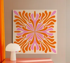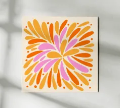 Ravvivate il vostro spazio con questa audace stampa astratta! "Yellow Summer" presenta forme organiche arancioni dinamiche che si irradiano verso l'esterno, su uno sfondo corallo vivace con morbide sfumature beige. Il design fluido e giocoso evoca il calore e l'energia delle giornate di sole, rendendolo un pezzo perfetto per interni moderni, spazi di lavoro creativi o qualsiasi stanza che abbia bisogno di un tocco di colore e vivacità.