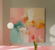 Ricca di luce e di emozioni, "Sunlit Abstraction" è una vibrante danza di corallo, giallo limone e verde acqua stratificata con pennellate espressive. Questa moderna composizione astratta ispirata all'olio trasmette un senso di calore e spontaneità, evocando l'eleganza giocosa di un'alba filtrata attraverso l'emozione della texture. Perfetta per illuminare gli interni contemporanei, questa stampa ad alta risoluzione porta a casa vostra un fascino da galleria.
