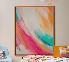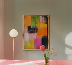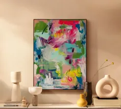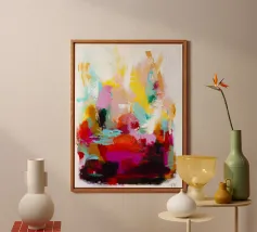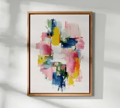 Ricca di luce e di emozioni, "Sunlit Abstraction" è una vibrante danza di corallo, giallo limone e verde acqua stratificata con pennellate espressive. Questa moderna composizione astratta ispirata all'olio trasmette un senso di calore e spontaneità, evocando l'eleganza giocosa di un'alba filtrata attraverso l'emozione della texture. Perfetta per illuminare gli interni contemporanei, questa stampa ad alta risoluzione porta a casa vostra un fascino da galleria.