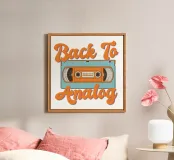 Una canzone d'amore visiva all'era analogica: al centro c'è un'audiocassetta stilizzata in arancione, nero e grigio, incorniciata in una custodia blu - un simbolo iconico dell'era delle VHS e dei mixtape. La scritta "Back To Analogue", in caratteri arancioni curvi e con un bordo in ombra blu, va al cuore del messaggio: il retrò non è solo stile, è attitudine.