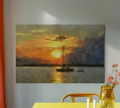 Questo suggestivo paesaggio marino di Ivan Aivazovsky raffigura un'imbarcazione che affronta onde turbolente al chiaro di luna. Il contrasto tra la luce argentea e l'acqua scura e agitata accresce il dramma e conferisce alla scena un'atmosfera poetica e ammaliante. La maestria di Aivazovsky nel gestire la luce e il movimento conferisce tensione e bellezza al mare notturno. La sua presenza lunatica e cinematografica lo rende particolarmente adatto a salotti, studi, biblioteche e interni raffinati che privilegiano un'arte drammatica e d'atmosfera.