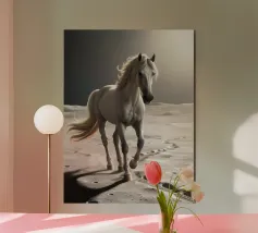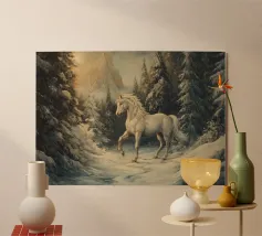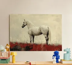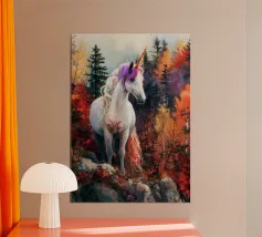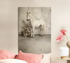 Sperimentate la pura magia di una creatura leggendaria con questo splendido ritratto di unicorno. Catturato in uno stile artistico senza tempo, il maestoso unicorno bianco si erge con grazia e potenza. Lo sfondo minimalista e strutturato esalta la sua bellezza eterea, rendendolo un pezzo sofisticato e incantevole per un interno classico o moderno, per la stanza di un bambino o per qualsiasi spazio che abbia bisogno di un po' di meraviglia.