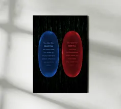 Stampa di Matrix, poster cinematografico alternativo, arte murale minimale, b&n, pillola rossa, pillola blu, verità, realtà, scelta, distopia, regalo per i fan del cinema