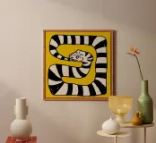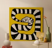 Il serpente che mangia la coda mette a fuoco il leggendario ouroboros con vibranti toni gialli, che simboleggiano rinnovamento ed energia. Questa illustrazione ispirata ai miti cattura l'eterno ciclo della vita, fondendo l'antico simbolismo con l'audace arte contemporanea. Una delle quattro varianti che si combinano perfettamente in un set di grande effetto.