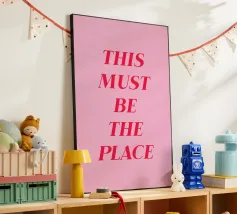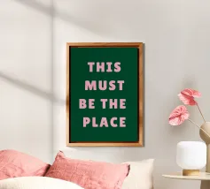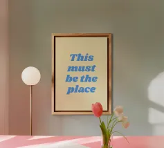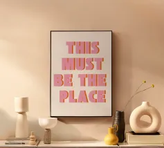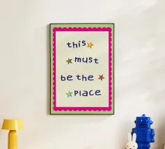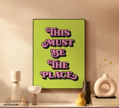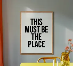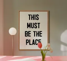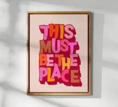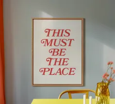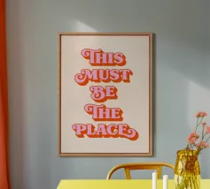 Una stampa tipografica audace e nostalgica con la scritta "This Must Be The Place" in lettere retrò. Perfetta per aggiungere un tocco accogliente a qualsiasi casa grazie alla sua estetica calda, ottimista e vintage. Un pezzo colorato che illumina qualsiasi spazio, ideale per gli amanti dei caratteri retrò e dell'arredamento dopaminico. Da showmemars
