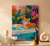 Tigre in piscina circondata dal fogliame alluminio dibond