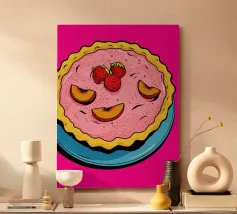 Una crostata di frutta dallo stile allegro, con colori vivaci e abbondanti guarnizioni di frutta.