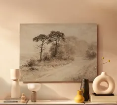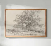 Disegno di paesaggio arboreo d'epoca rimasterizzato.