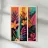 Un trittico di illustrazioni contemporanee, con fiori esotici e fogliame lussureggiante in toni vivaci. Un pezzo ideale per una decorazione murale audace ed elegante.