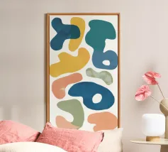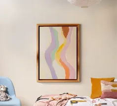 Colori vivaci in un movimento fluido: Questo poster d'arte moderna mostra forme intrecciate, simili a nastri, nei colori rosa, arancione, giallo e blu. La composizione curva crea un equilibrio dinamico e una profondità visiva grazie alla sovrapposizione delle trasparenze. Perfetto per spazi creativi, interni moderni e pareti colorate con un occhio di riguardo al design.