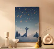 Un simpatico dinosauro blu osserva la pioggia di meteoriti alluminio dibond