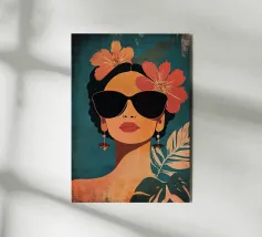 Questo poster espressivo combina la sensualità tropicale stilizzata con la raffinatezza grafica. Con potenti tonalità beige boho e contrasti netti, ricorda l'estetica dell'Art Déco e le illustrazioni iconiche della moda. La posa sicura e i dettagli floreali aggiungono fascino e forza al motivo: una dichiarazione femminile esotica ed elegante. Ideale per ambienti moderni e per chi ha un senso di stile e di vagabondaggio: una volta nei mari del sud, non si torna più indietro.