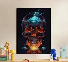 Uno scheletro siede tra vecchie cassette in un'atmosfera spettrale alluminio dibond