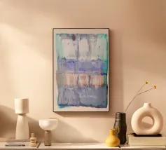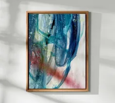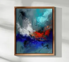 Variations in Blue è un gioco meditativo con la profondità e la diversità di un singolo colore. Dall'azzurro gelido al vellutato blu notte, il quadro si sviluppa come un brano musicale, a volte morbido e fluente, a volte potente ed eruttivo. Le forme sono sfaccettate: ondulate, geometriche, a volte sfocate come nuvole, come se il blu si reinventasse continuamente.