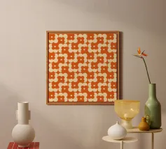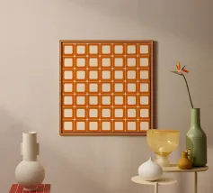 Vibrazioni nostalgiche dei loop retrò arancione bruciato alluminio dibond con Cornice Artbox