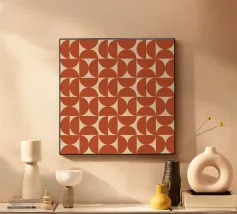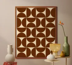 Questo motivo ad anelli retrò arancione bruciato trasmette un'energia calda e nostalgica, ispirata all'arredamento eclettico degli anni '60 e '70. Le sue curve geometriche fluide creano una dichiarazione audace ma accogliente, perfetta per stampe d'arte, tessuti e interni moderni e retrò.