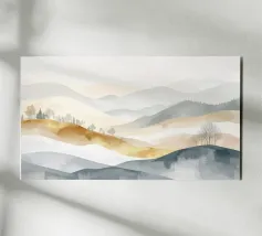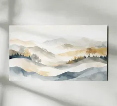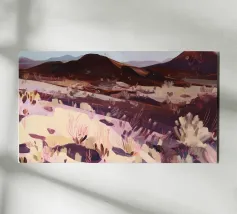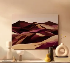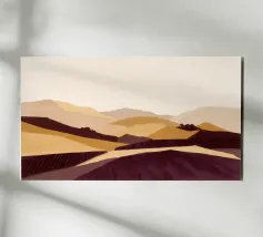 Uno studio minimalista di colline ondulate e vallate costeggiate da vigneti, reso in calde ocre, prugne profonde e tenui tonalità della terra. Ispirate ai paesaggi delle campagne vinicole, le forme pulite e i morbidi gradienti evocano la calma solare dei campi fertili e delle vendemmie, distillando l'essenza della viticoltura rurale in una forma pura e astratta.