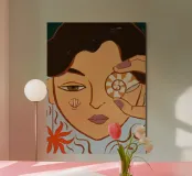 Una donna tiene una conchiglia in un occhio, con lo sguardo seminascosto, come se scrutasse le correnti segrete dell'oceano. L'opera รจ una lettera d'amore all'intuizione, al mistero e all'antico linguaggio del mare, che cattura il delicato dialogo tra anima e acqua.
