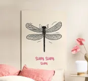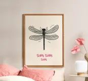 Questa allegra illustrazione di una libellula con l'arguto testo rosa "Sum Sum Sum" cattura la leggerezza e la giocosità della natura in modo minimalista.