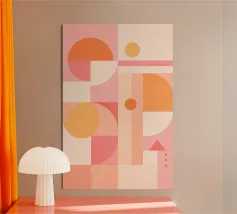 This abstract composition explores harmony through overlapping geometric forms and a warm, vintage-inspired palette. Rounded rectangles intersect softly, creating layered transparencies that suggest movement and depth without rigid structure. Tones of terracotta, coral, ochre, soft cream, and muted gold evoke mid-century modern design while remaining fresh and contemporary. Subtle surface texture adds a tactile quality, balancing precision with warmth. The artwork reflects quiet rhythm and balance, making it a refined statement piece for modern, minimalist, or retro-inspired interiors.