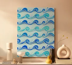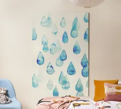 Questa opera d'arte acquerellata blu con motivo Waterdrop è un pezzo di grande impatto visivo. L'opera d'arte presenta un motivo ripetuto di gocce d'acqua rese in acquerello. Questa opera d'arte è perfetta per chi apprezza l'arte dell'acquerello e i motivi a goccia.
