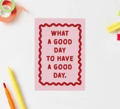 ⭐️Start ogni giorno con un sorriso! Questo vivace poster rosa con l'allegra citazione "What a Good Day to Have a Good Day" è il promemoria perfetto per abbracciare la positività e le buone vibrazioni. Appeso in ufficio, in soggiorno, in camera da letto, in un dormitorio o in un piccolo appartamento, risolleva immediatamente l'umore e aggiunge un tocco fresco e moderno al vostro spazio. Una bellissima idea regalo per studenti, amici o chiunque ami un po' di ispirazione in più nella vita quotidiana. Stampato su carta di alta qualità e con colori brillanti e duraturi, è fatto per accendere la gioia, ogni singolo giorno!