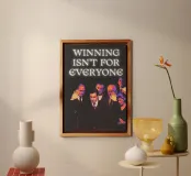 Un gruppo di persone dall'aspetto serio e dai toni decisi del neon sotto la scritta "Vincere non è per tutti", che simboleggia potere ed esclusività.