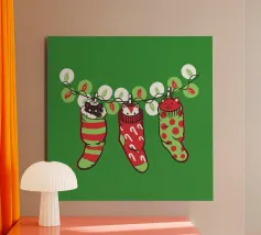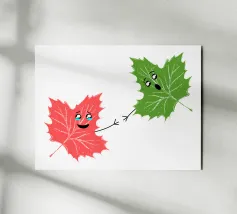 Due lampadine dei cartoni animati, una verde e una rossa, si confrontano in una conversazione scherzosa sul lavoro durante le vacanze. La lampadina verde pone la domanda, mentre la lampadina rossa risponde con umorismo.