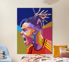 ZDLR in WPAP (Wedha's Pop Art Portrait) è una rappresentazione vibrante e geometrica dell'iconico musicista. Lo stile utilizza colori piatti e audaci e linee nette per enfatizzare l'espressione intensa e la presenza potente di Zack, riflettendo il suo appassionato attivismo. L'opera cattura il suo spirito ribelle e la sua influenza culturale attraverso l'energia dinamica dell'arte WPAP.
