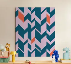 Questa opera d'arte è un motivo a zigzag verde senza soluzione di continuità che unisce l'estetica moderna al fascino retrò. Le linee decise e il verde vibrante aggiungono un'atmosfera dinamica e fresca. Perfetto per chiunque voglia aggiungere un tocco di stile al proprio arredamento. Date un'occhiata e date un tocco di audace eleganza al vostro spazio!
