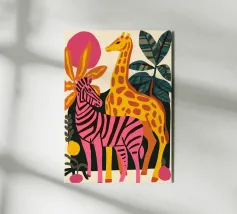 Portate l'allegria di un parco naturale in casa vostra con la stampa Retro Pop Zoo! Questo disegno combina uno stile pop moderno e colorato con illustrazioni di animali carini e coccolosi.