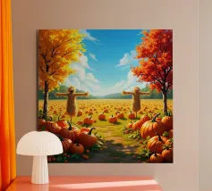 Zucche in un campo d'autunno alluminio dibond