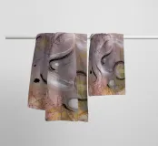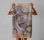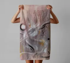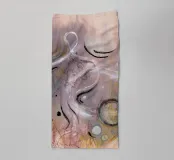 Linee fluide e danzanti emergono su uno sfondo rosa vellutato, dove le sfumature di malva, ocra e bianco si fondono in un'atmosfera eterea e vibrante. Tratti neri e circolari interrompono la morbida tavolozza cromatica, portando ritmo e contrasto, come impulsi di energia che attraversano lo spazio pittorico. Il dipinto parla di un sottile equilibrio tra gesto e silenzio, tra visibile e invisibile. È un'eco del movimento universale, dove la pittura diventa un linguaggio di energia e spirito.