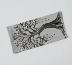 Questa silhouette mostra un albero nodoso e consumato dalle intemperie, con fili di muschio pendenti su cui sono appollaiati diversi corvi. Due lanterne pendono dai rami, mentre i pipistrelli volano sullo sfondo. Il disegno trasmette un'atmosfera misteriosa e un po' cupa che ricorda vecchie leggende o mondi fantastici. Ideale per gli appassionati di stile gotico, estetica fiabesca o decorazioni di Halloween. Il contrasto minimalista tra il nero e lo sfondo chiaro aumenta l'effetto drammatico.
