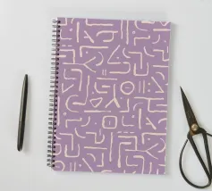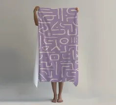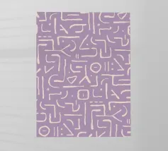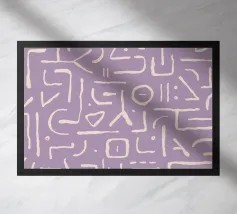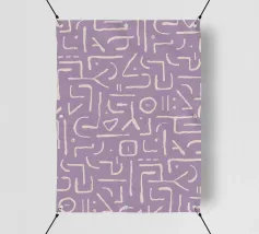 Motivo artistico astratto con sfondo lavanda e linee bianche stravaganti e labirintiche che ricordano un codice segreto. Questo disegno unico e creativo è perfetto per essere utilizzato in vari progetti grafici, tra cui sfondi di siti web, copertine di libri o disegni tessili, e piacerà a chiunque sia alla ricerca di motivi intricati e stimolanti.