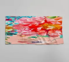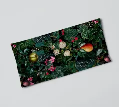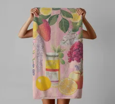 Un collage colorato di frutta fresca e fiori di ciliegio in tenui colori pastello che dà vita all'estate su uno sfondo rosa. Ideale per gli amanti del mercato della frutta e della natura!