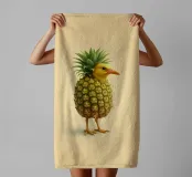 Portate una ventata di fascino tropicale nel vostro spazio con questa stravagante opera d'arte con uccello ananas. Con un uccello giallo brillante che emerge da un corpo di ananas realistico, completo di corona di foglie ed espressione giocosa, questo disegno unisce creatività e umorismo in uno stile pulito e moderno. Il morbido sfondo beige ne esalta l'estetica calda ed estiva. Perfetto per cucine, camere dei bambini, studi o collezionisti di arte stravagante e fantasiosa, aggiunge un tocco divertente ed edificante a qualsiasi interno.
