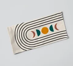 Le forme geometriche sono disposte in una composizione equilibrata con cerchi, archi e semicerchi in tonalità tenui. Il design è caratterizzato da un gioco di linee e forme che creano un senso di simmetria e armonia.