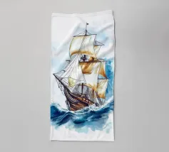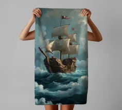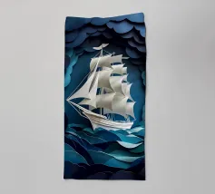 Un veliero storico fende con forza le onde blu profondo sotto un cielo vivido. La luce del sole al tramonto dona alla vela riflessi caldi e fa apparire l'imbarcazione maestosa. Questo poster cattura in modo impressionante il fascino della navigazione a vela e la libertà del mare aperto - un punto di forza per gli interni marittimi.