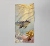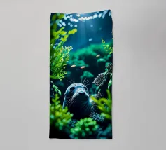 Una foca maculata scivola pacificamente tra le dolci onde, circondata da coralli che brillano nelle calde tonalità dell'oro e del blush. Quest'opera d'arte rivela il lato tenero dell'oceano: calmo, radioso e pieno di bellezze estetiche sotto la superficie baciata dalla luce del sole. Immaginato da Trinkets NL Design Studio, visualizzato con l'aiuto dell'AI.