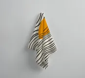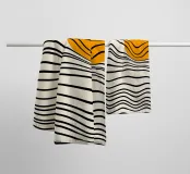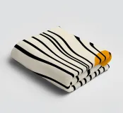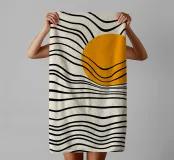 Una composizione minimalista in cui le linee nere che scorrono evocano le onde dell'oceano sotto un radioso sole giallo caldo. Il pezzo combina il movimento naturale con l'ordine di ispirazione Bauhaus, creando un'armonia visiva elegante e senza tempo.