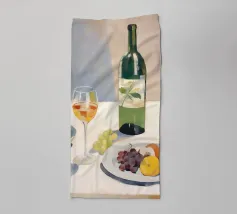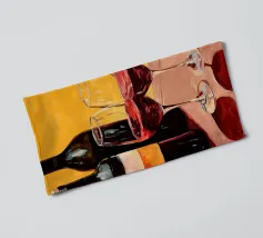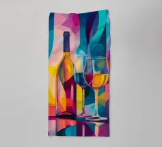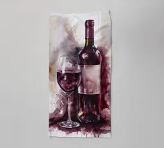 Due bottiglie di vino, un bicchiere di vino rosso e uva fresca su uno sfondo di foglie di vite verdi: questa classica natura morta è un omaggio al piacere, all'artigianato e alla natura. I colori tenui e la rappresentazione realistica rendono il motivo particolarmente adatto a cucine, sale da pranzo o cantine. Ideale per gli amanti del vino, i sommelier o come regalo per gli intenditori.