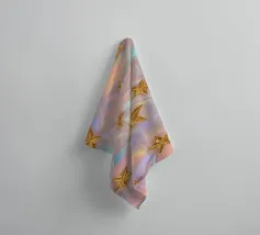 Chiave dal design cromato iridescente in un sacchetto di plastica testurizzato