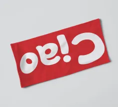 ciao text design, augurio grafico italiano, tipografia rossa in grassetto, lettering moderno e minimalista, parola italiana elegante, testo grafico d'arte